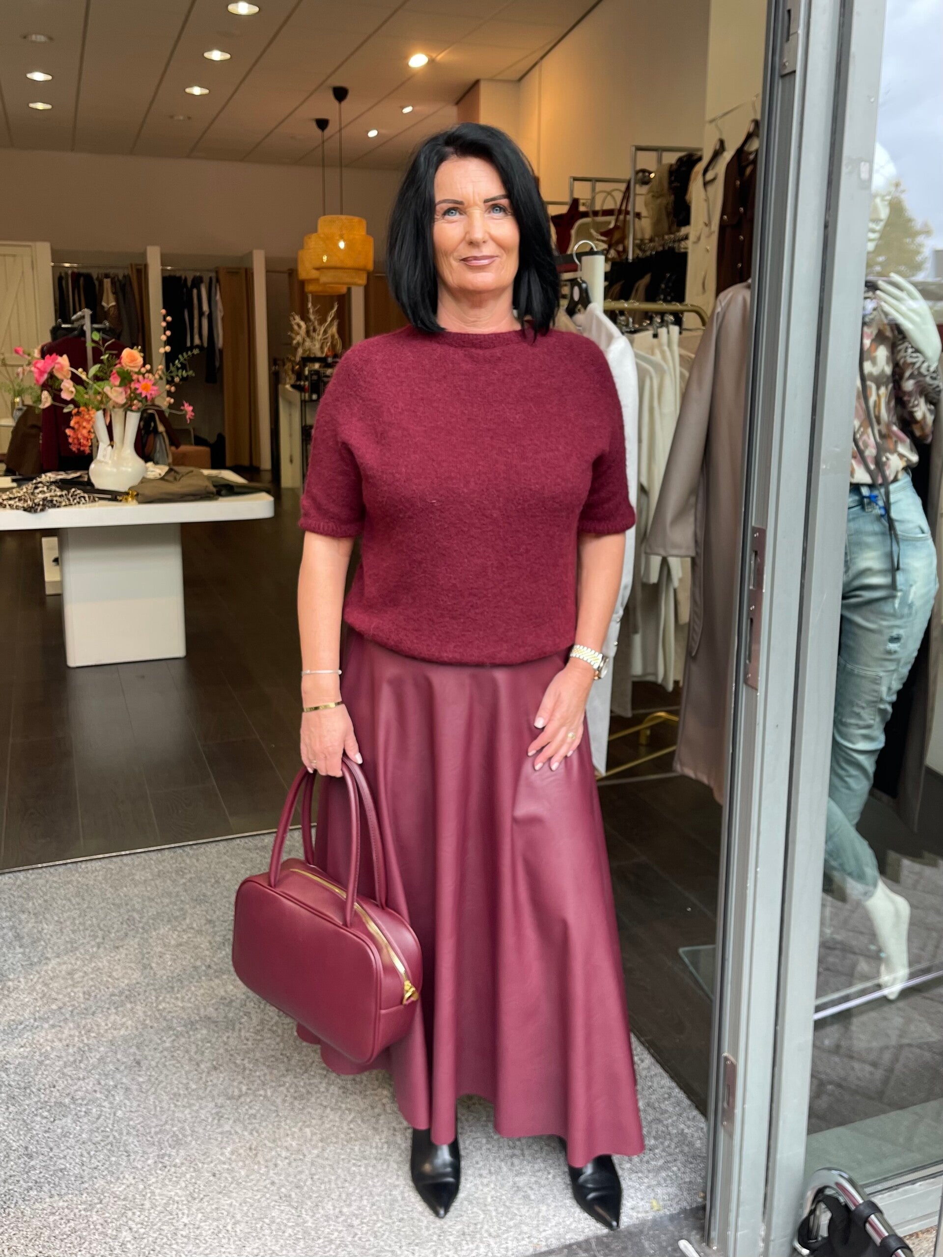 Prachtig truitje in sand-beige kleur gemaakt van baby alpaca met ronde hals en korte mouw.