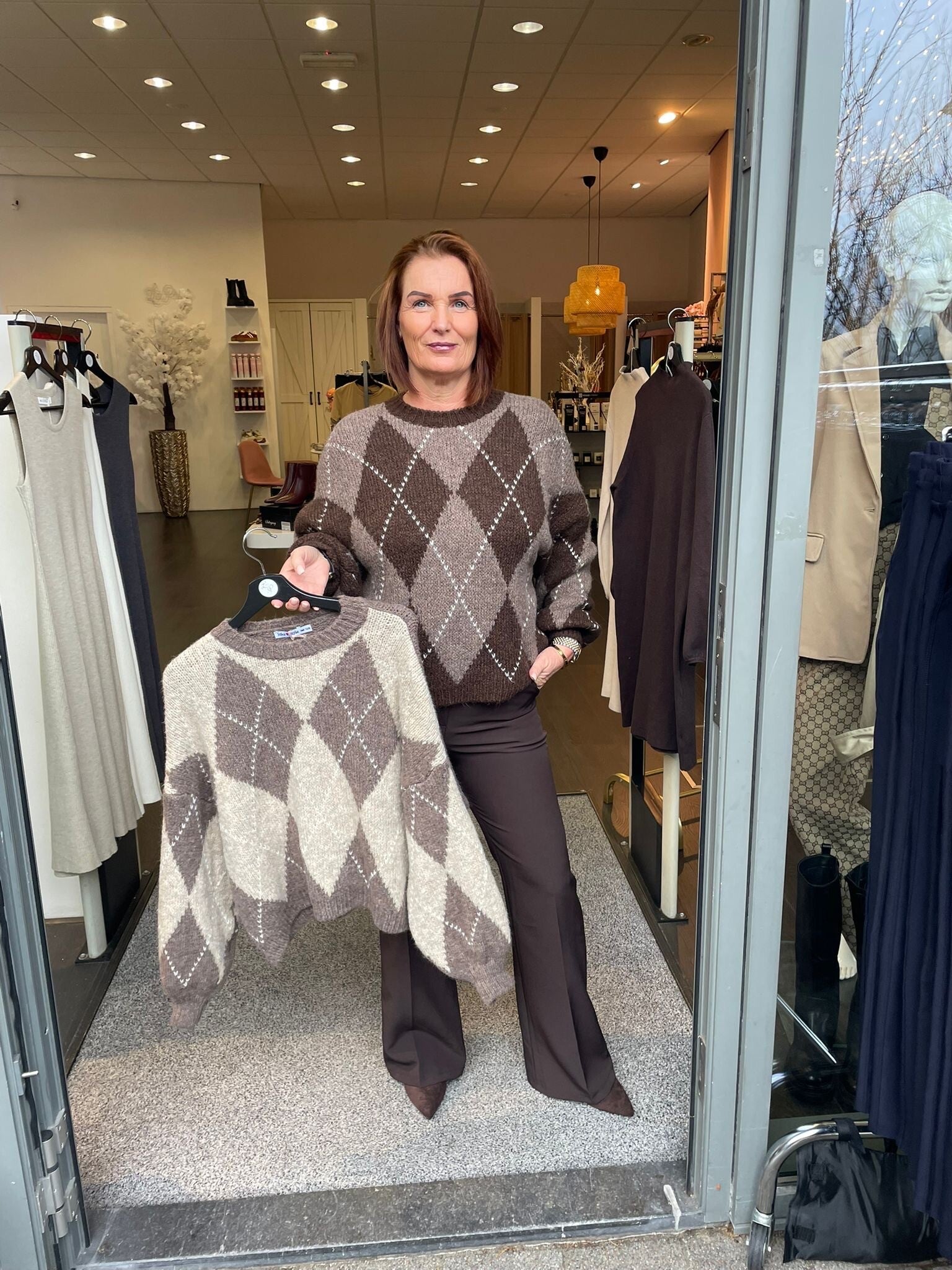 Trui in een mooie ruit print in college look.